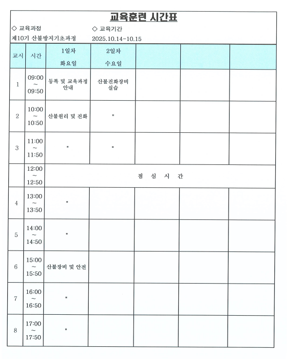 2025년 제10기 산불방지 기초과정 교육 안내문입니다.